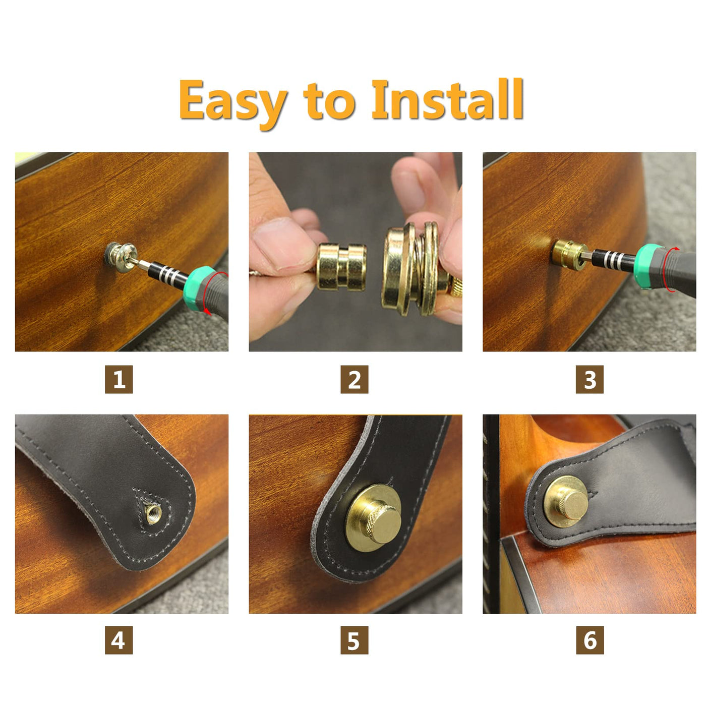 • Q: How do I install the guitar strap locks? A: To install the strap locks, replace your original strap pins without making any changes to the guitar. Start by installing the screw into the original screw hole, then pull out the nut and press the strap in.