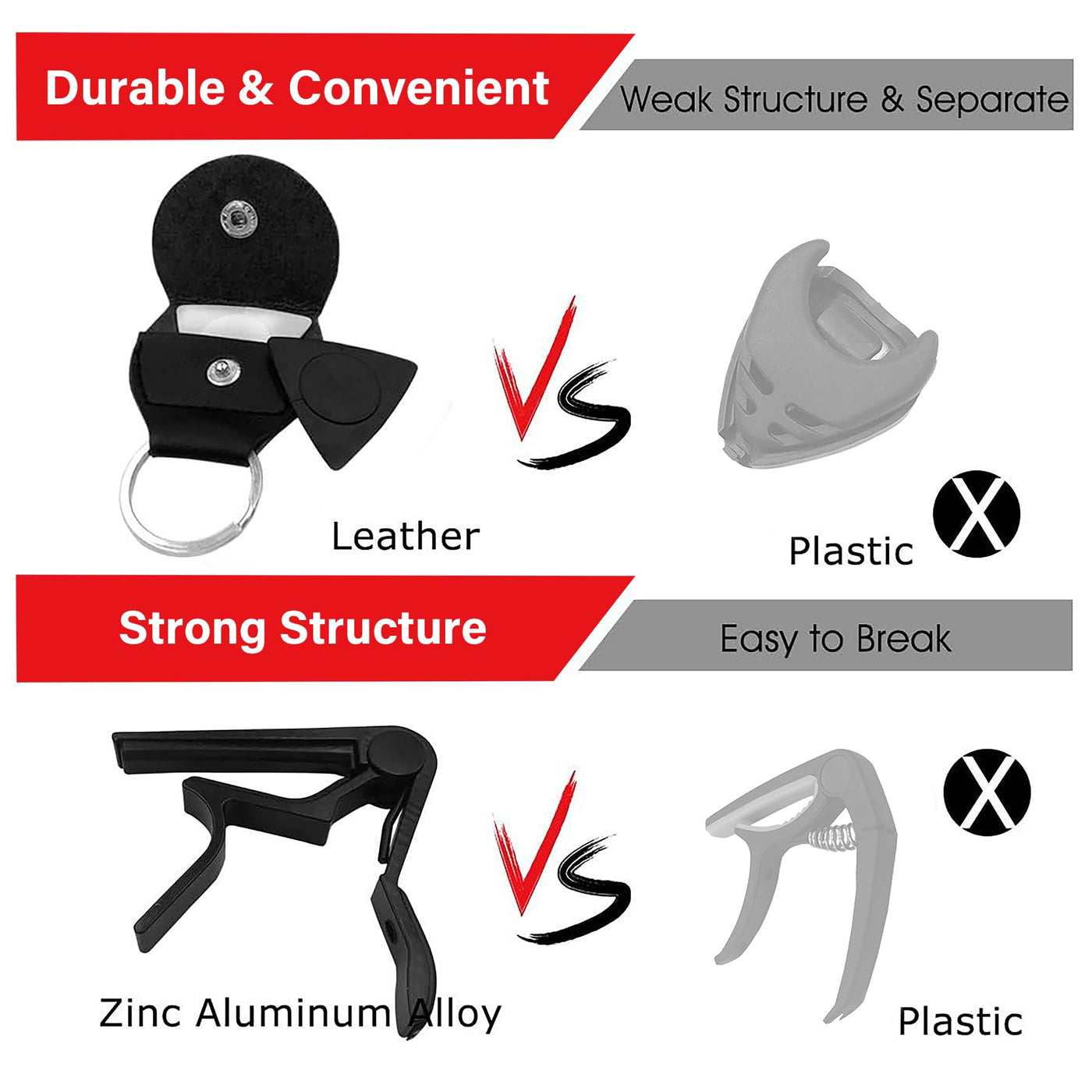 - Q: Can the tuner and capo be used on other instruments? A: Yes, both the guitar tuner and capo are designed to be compatible with various string instruments, including ukuleles, violins, and basses.