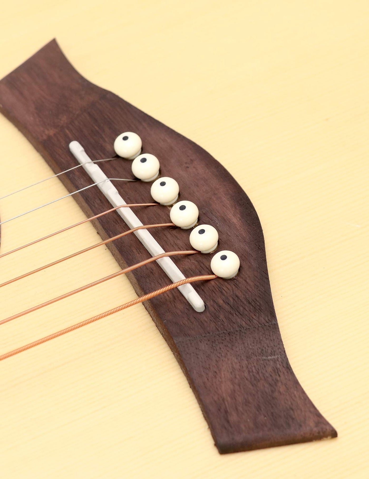 - Q: Do these bridge pins help with string tuning stability? A: Yes, the design of these bridge pins ensures a secure and consistent string fitting, which can contribute to better tuning stability.