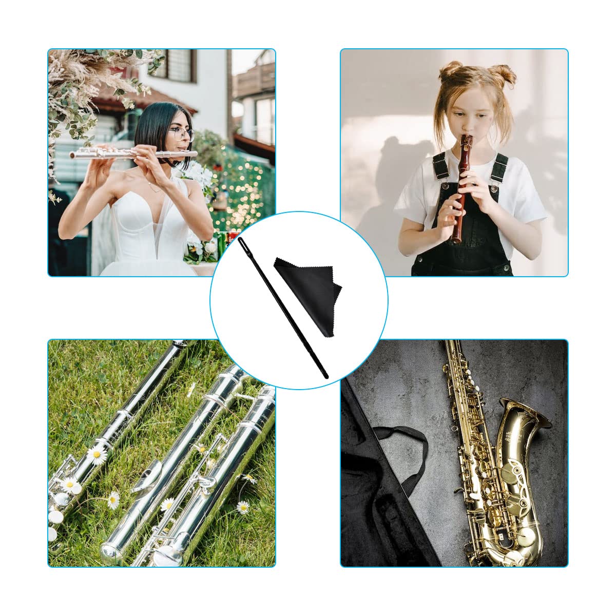 • Q: Can this cleaning kit be used for piccolos? A: Yes, the flute cleaning rod and cloth are suitable for cleaning both flutes and piccolos.