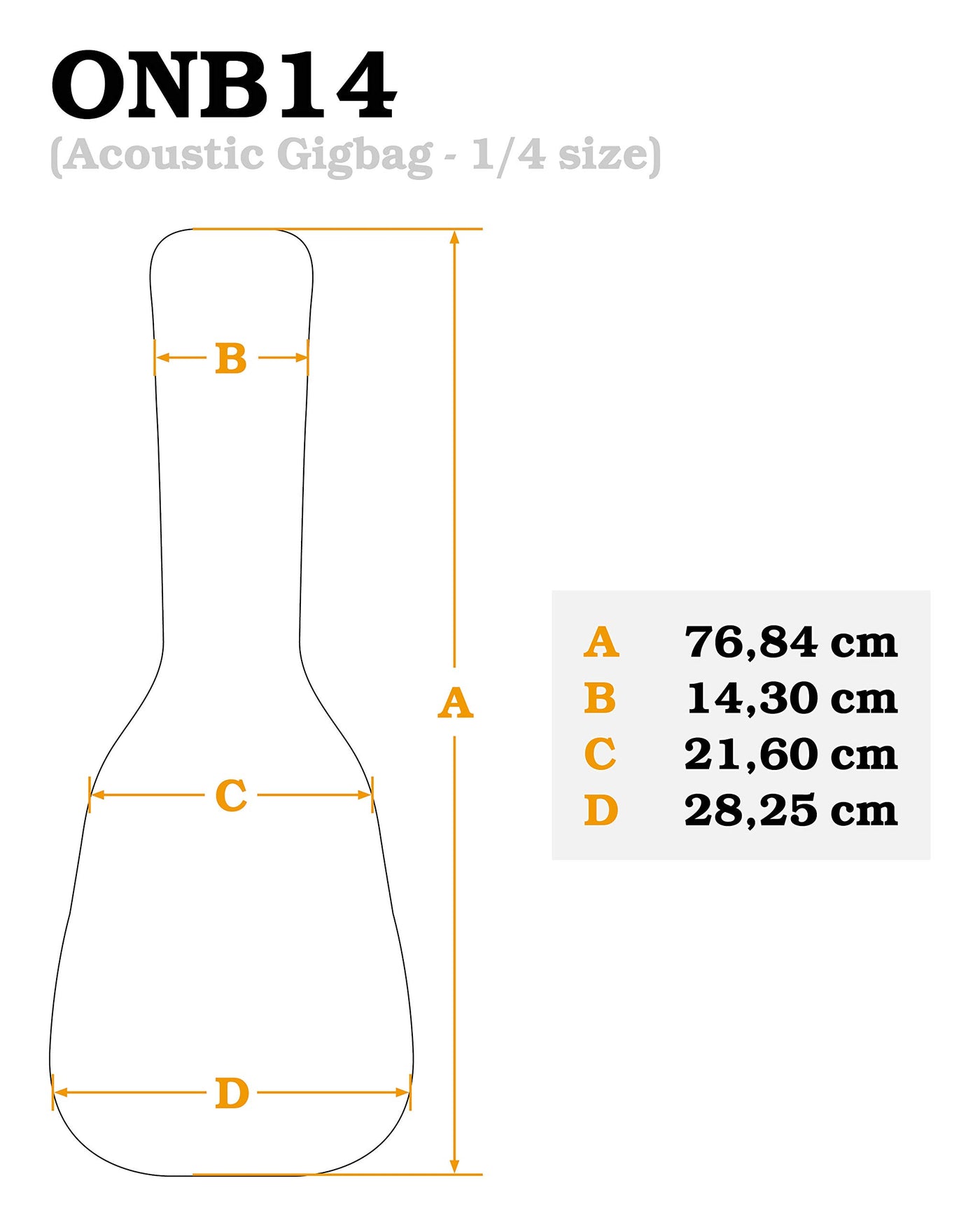 - Q: What are the dimensions of the Ortega Guitars Long Full Size Classical Guitar Gig Bag? A: The bag has the following dimensions: Lower bout width 15.75 inches, upper bout width 12.25 inches, neck width 5.63 inches, and length 41.5 inches.