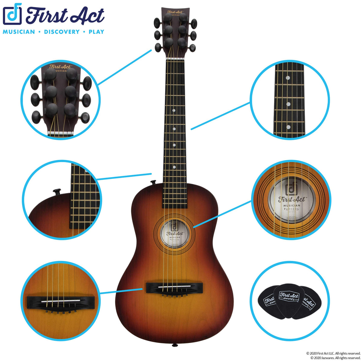 First Act Acoustic Sunburst Guitar, 30 Inch - Brass Acoustic Guitar Strings, Tuning Gear, String Post Covers, Steel-Reinforced N