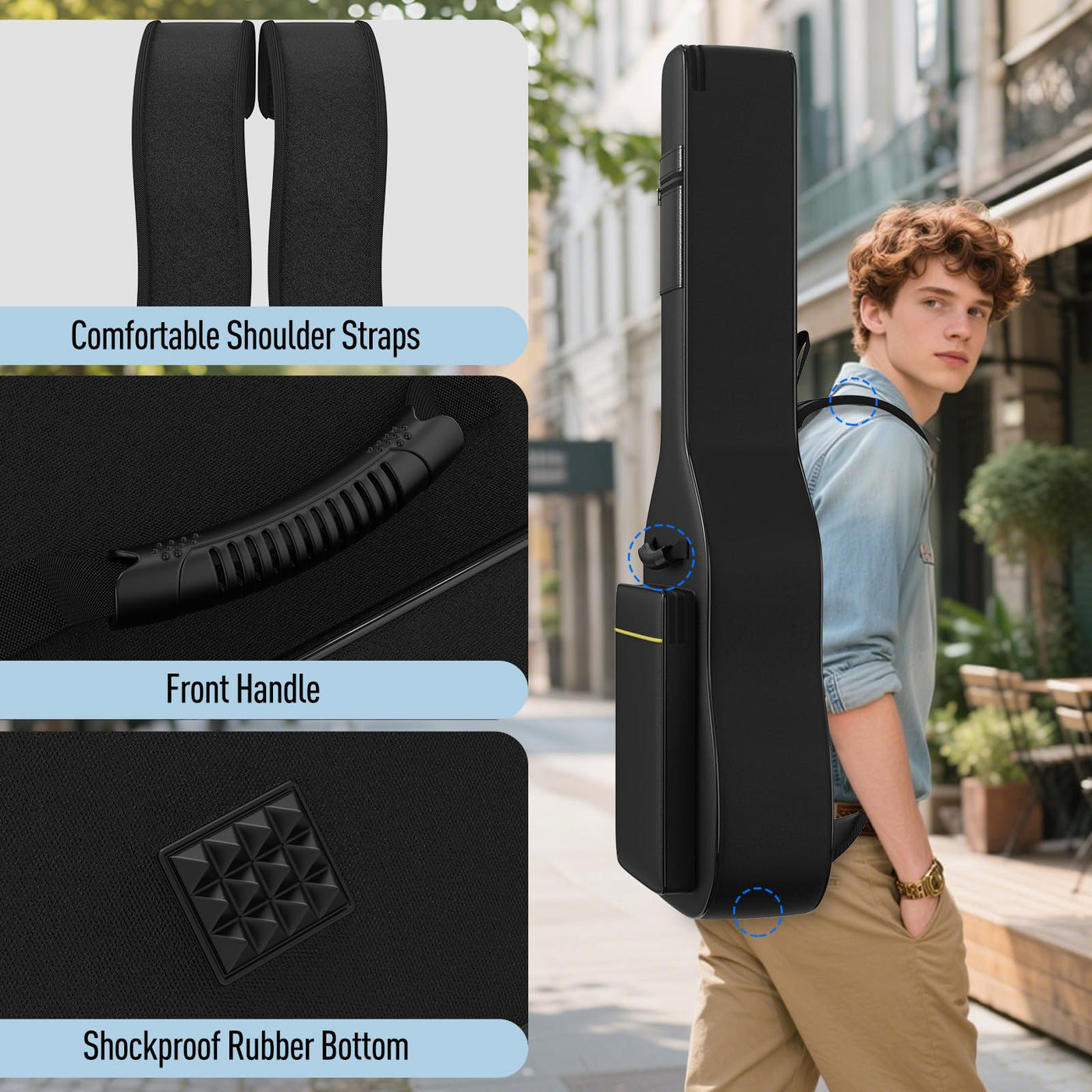 - Q: How does the padding protect my guitar? A: The special sponge padding provides cushioning that absorbs shocks and impacts, helping to prevent damage during transport.