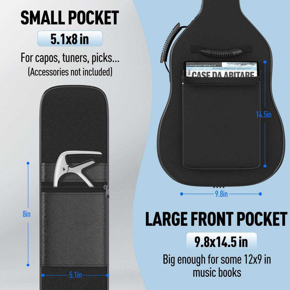 - Q: Can I fit accessories in the gig bag? A: Yes, the bag includes a large pocket suitable for carrying accessories such as books, capos, cables, and mini stands.