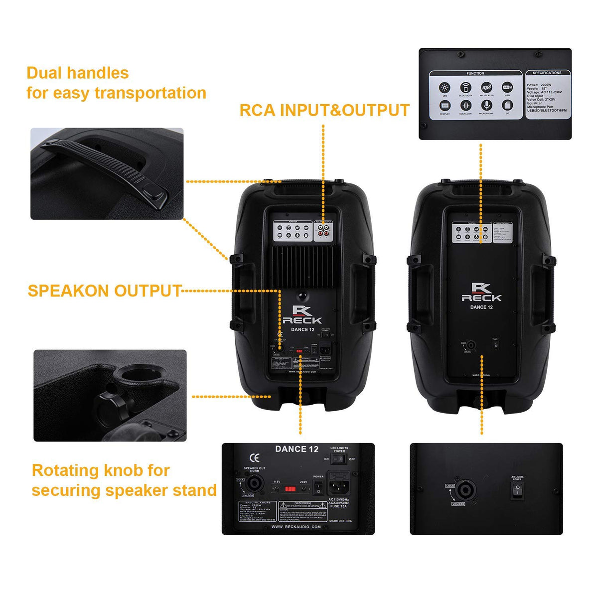 RECK DC 12 Portable 12-Inch 1000 Watts 2-Way Powered Dj/PA Speaker System Combo Set with Bluetooth/USB/SD Card Reader/FM Radio/R