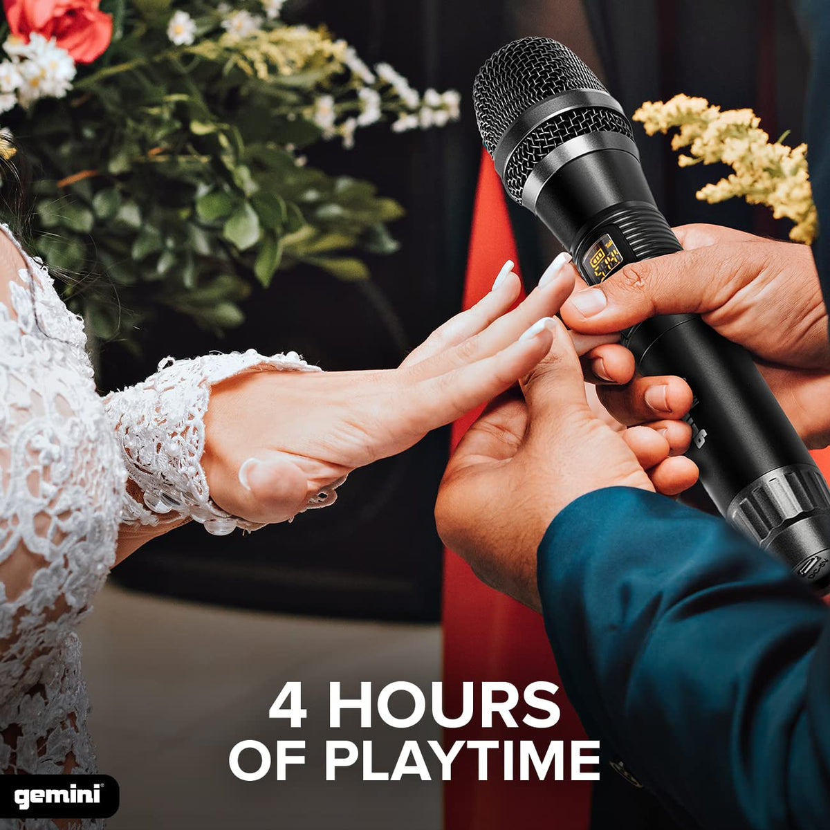 Gemini Sound GMU-M100 Professional Plug & Play Wireless Rechargeable UHF Handheld Microphone with Cordless Self Powered 1/4 Inch