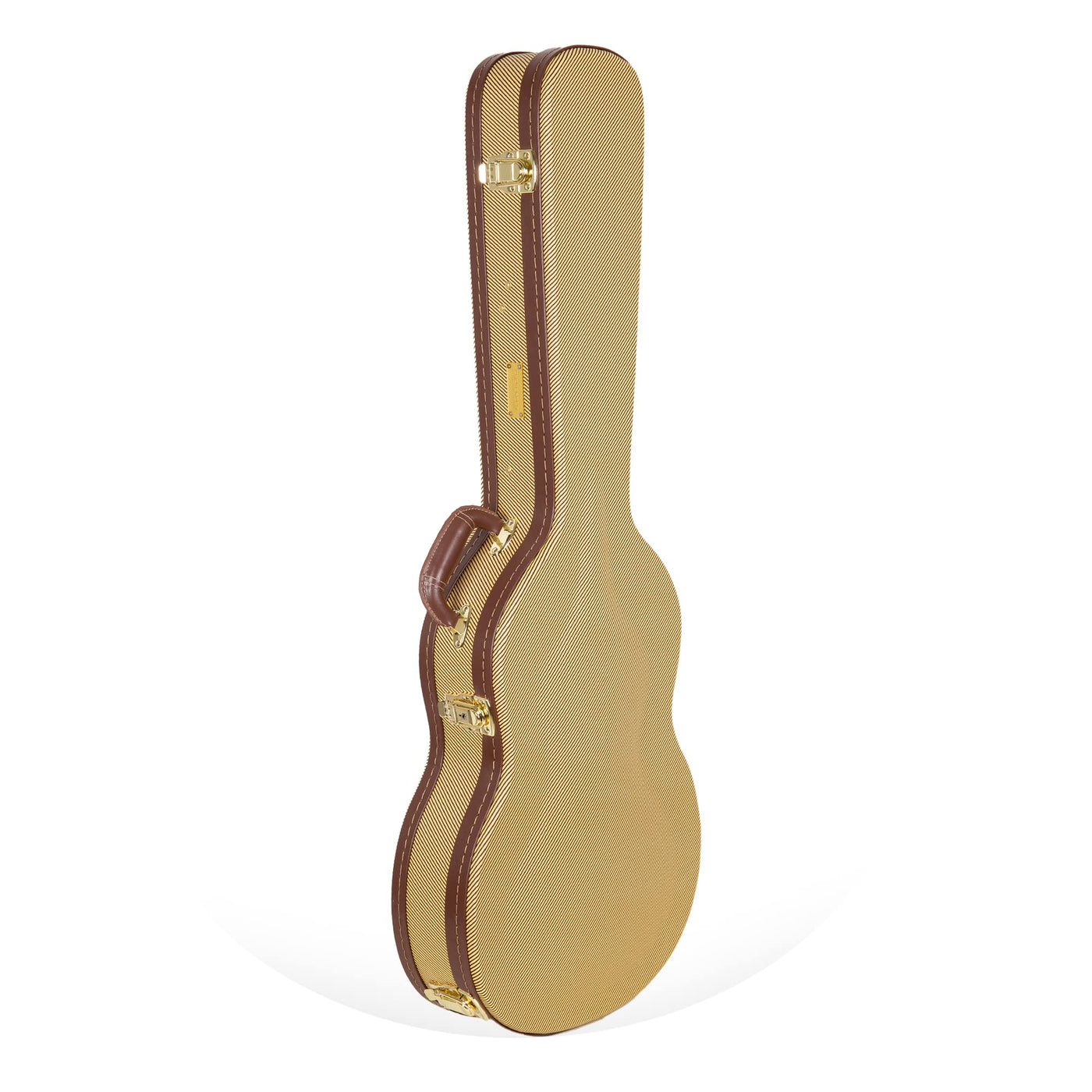 • Q: What is the exterior finish of the guitar case? A: The exterior of the case features a vinyl tweed finish, which adds a stylish look while providing protection.