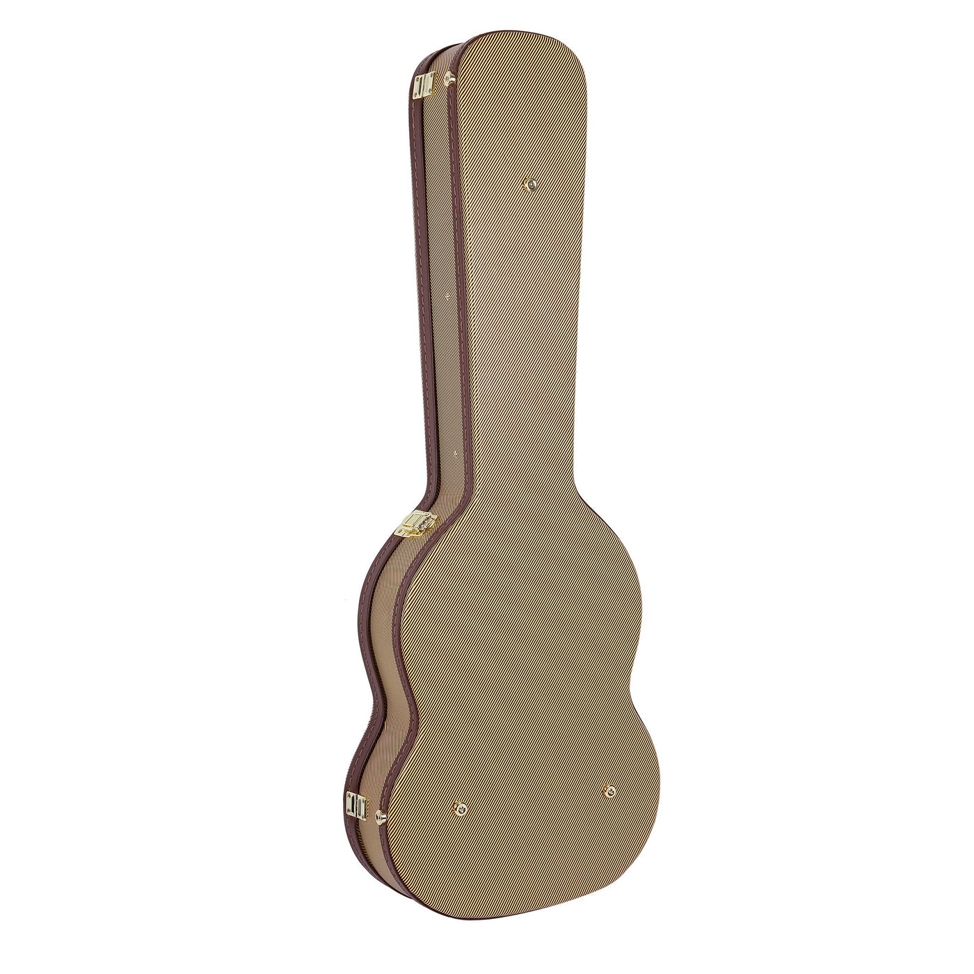 • Q: How does this case protect my guitar? A: This case is designed with upgraded gold latches, strong hinges, and a heavy-duty 5-ply wood core structure to protect against damages, dings, and bumps during transit or while in storage.