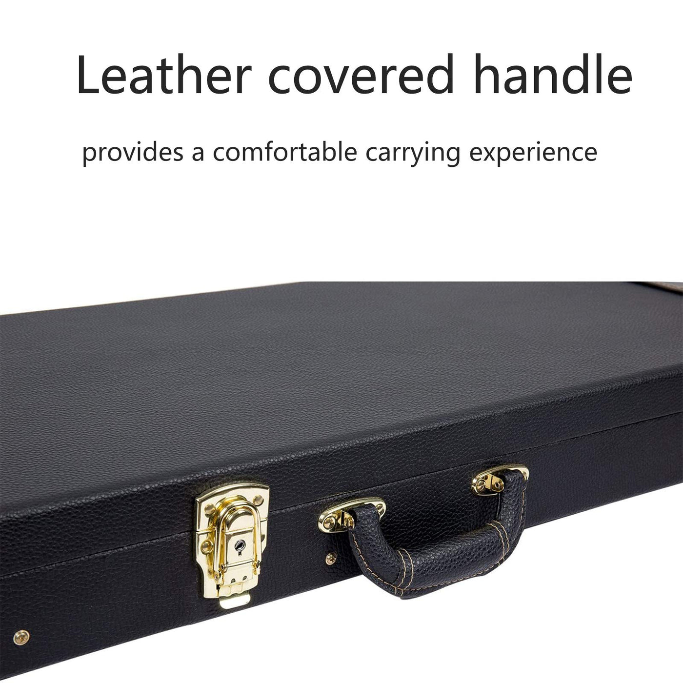 - Q: Does the case come with any additional features for security? A: Yes, the case includes upgraded deluxe gold latches and strong hinges to help secure your guitar and protect it from damage.