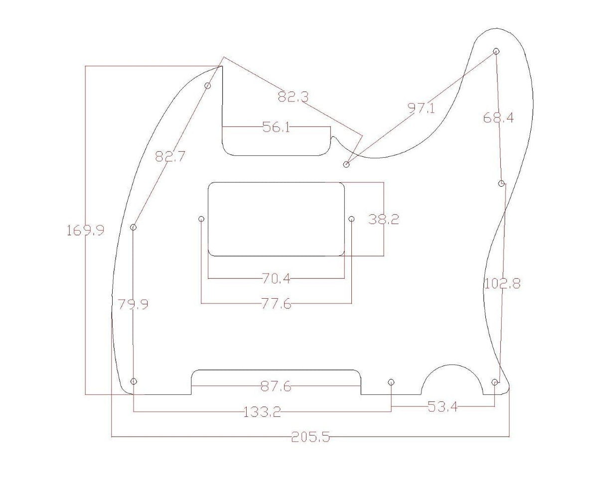 - Q: Are the screw holes standard for this pickguard? A: Pickguard holes may vary depending on the country of origin or manufacturing date. It is recommended to verify your screw-hole pattern according to the dimension photo provided.