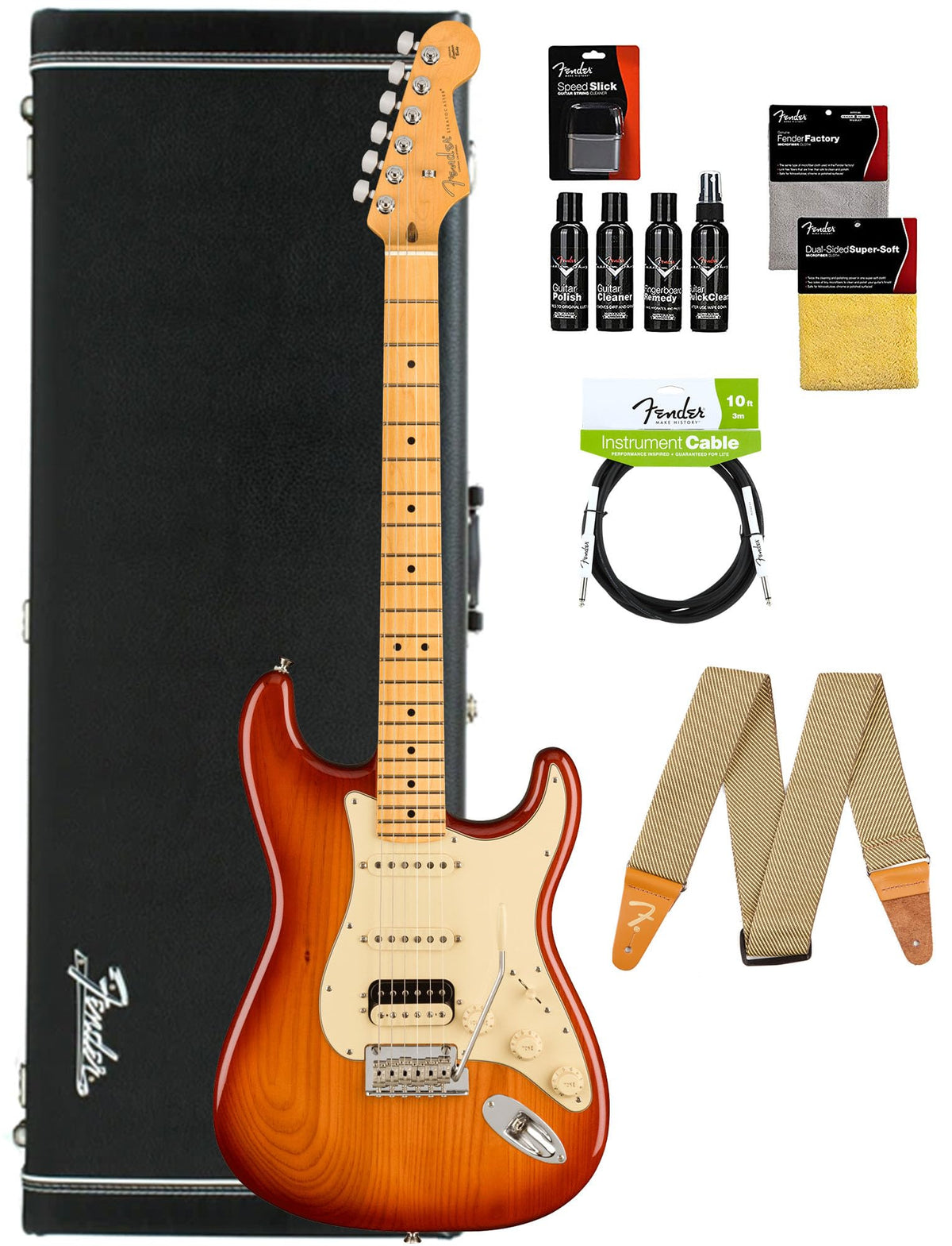 Fender American Professional II Stratocaster HSS - Sienna Sunburst Bundle With Case, Strap, Cable, and Guitar Cleaning Kit