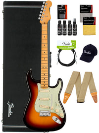 Fender American Ultra Stratocaster, Maple - Ultraburst Bundle with Case, Hat, Strap, Cable, and Guitar Cleaning Kit