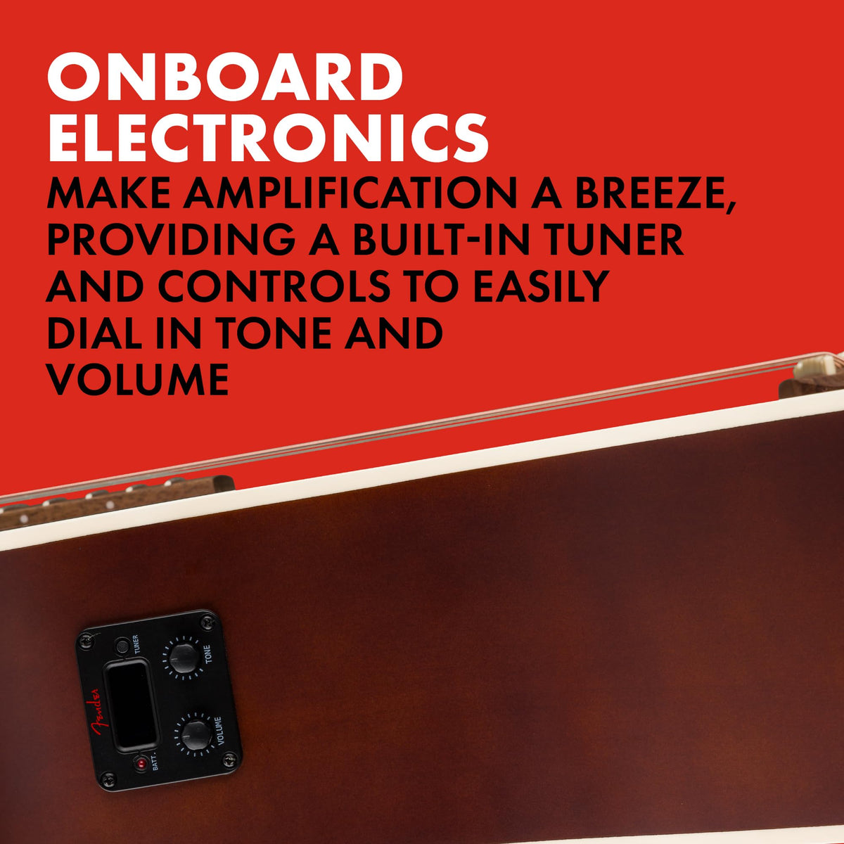 Fender California Debut Redondo CE Series Acoustic Guitar, Beginner Guitar, 2-Year Warranty, Includes Built-In Tuner, 2-Tone Sun