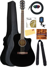Fender CD-60SCE Solid Top Dreadnought Acoustic-Electric Guitar - Black Bundle with Gig Bag, Cable, Tuner, Strap, Strings, Picks,