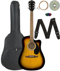 Fender FA-125CE Dreadnought Cutaway Acoustic-Electric Guitar - Sunburst Bundle with Gig Bag, Strap, Strings, Picks, Fender Play