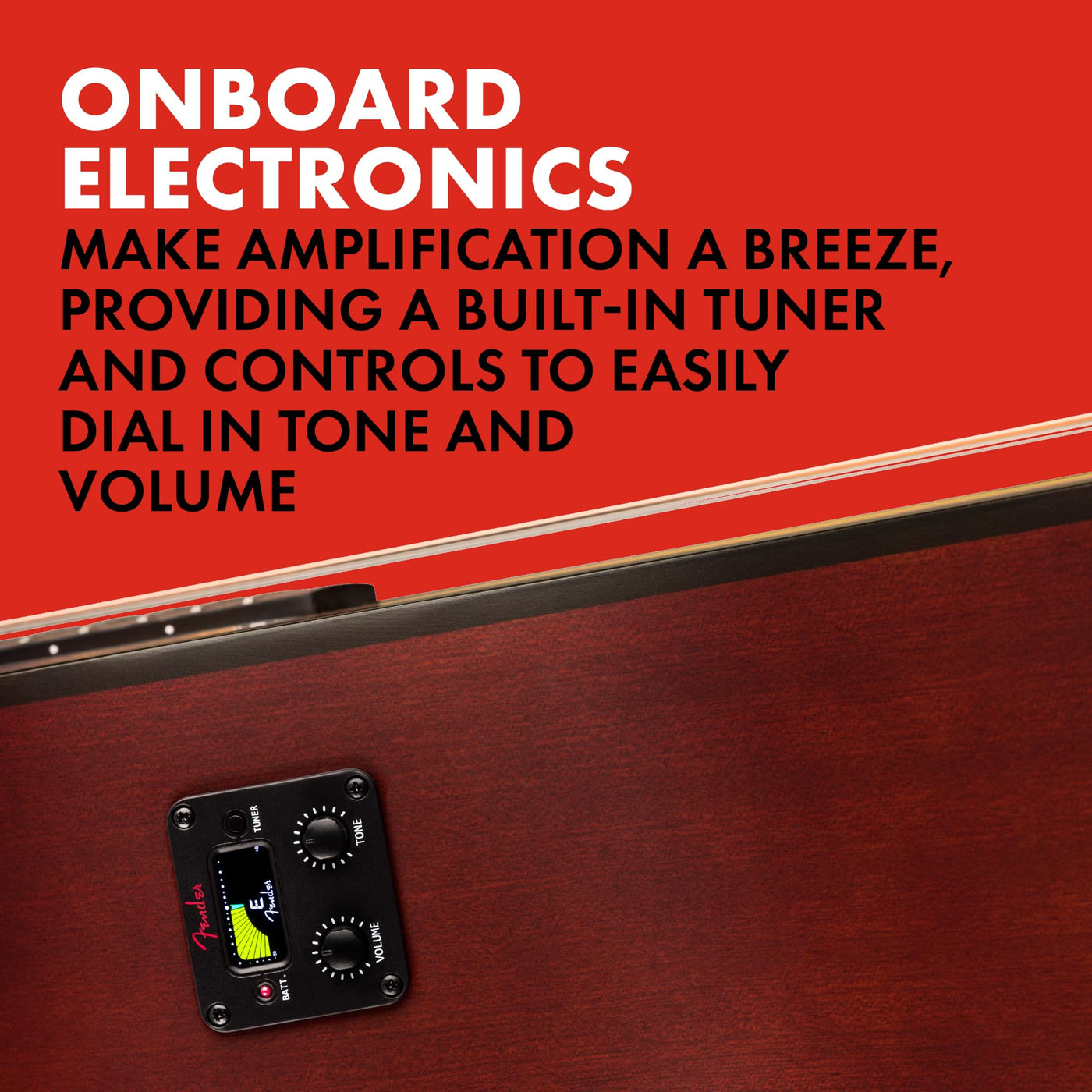 Fender FA-25CE Dreadnought Acoustic Electric Guitar, Beginner Guitar, with 2-Year Warranty, Includes Built-in Tuner and On-Board