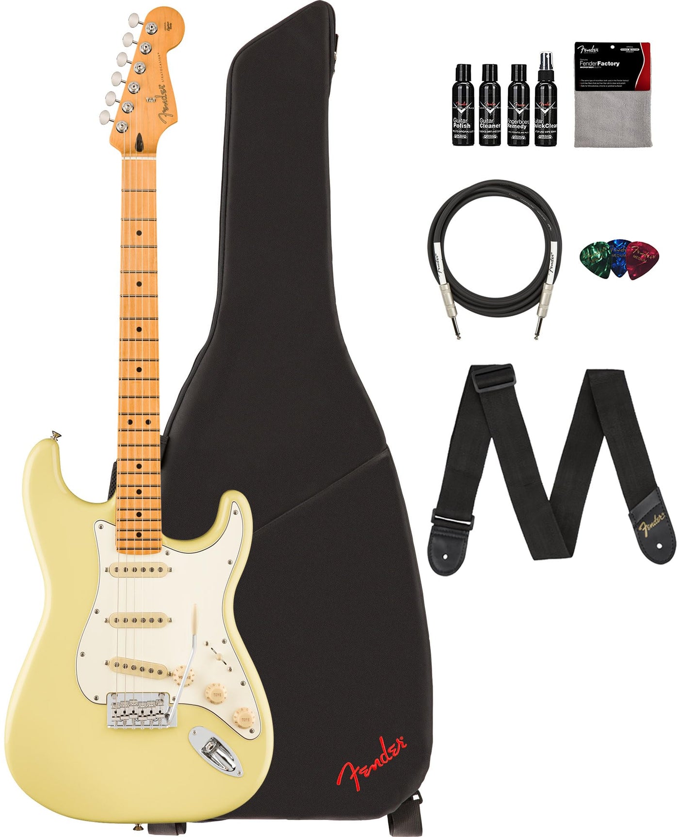 Fender Player II Stratocaster - Hialeah Yellow Bundle with Gig Bag, Strap, Cable, 3-Pack Picks and Guitar Cleaning Kit
