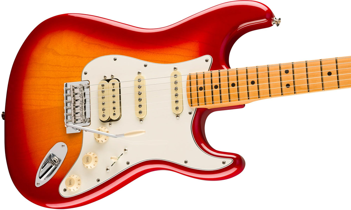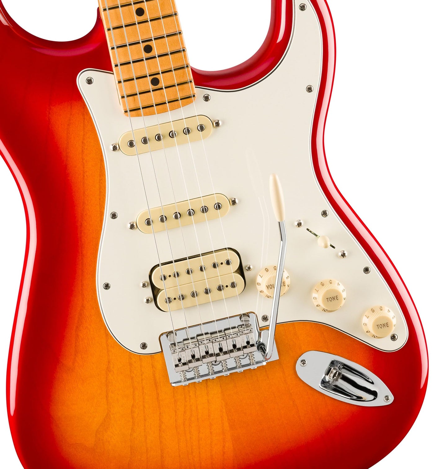 • Q: What is the pickup configuration on the Fender Player II Stratocaster HSS? A: This guitar features one Player Series humbucking pickup at the bridge and two Player Series single-coil pickups in the middle and neck positions.