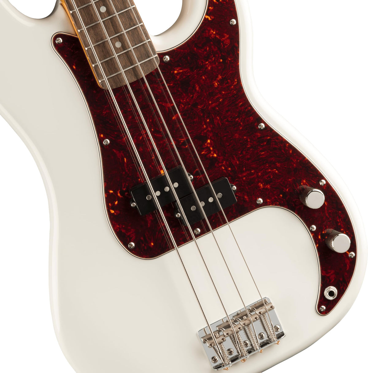 Product DescriptionA tribute to the decade that made the P Bass an icon, the Classic Vibe 60s Precision Bass embodies the aesthetics of the original and produces massive tone courtesy of its Fender-Designed alnico split-coil pickup. Player-friendly features include a slim, comfortable C -shaped neck profile with an easy-playing 9.5 -radius fingerboard and narrow-tall frets, as well as a vintage-style bridge with threaded saddles. This throwback Squier model also features 1960s-inspired headstock markings, rich-looking nickel-plated hardware and a slick vintage-tint gloss neck finish for an old-school vibe. From the Manufacturer A tribute to the decade that made the P Bass an icon, the Classic Vibe 60s Precision Bass embodies the aesthetics of the original and produces massive tone courtesy of its Fender-Designed alnico split-coil pickup. Player-friendly features include a slim and comfortable C -shaped neck profile with an easy-playing 9.5 -radius fingerboard and narrow-tall frets, as well as a vintage-style bridge with threaded saddles. This throwback Squier model also features 1960s inspired headstock markings, nickel-plated hardware and a slick vintage-tinted gloss neck finish for an old-school aesthetic vibe.From the ManufacturerA tribute to the decade that made the P Bass an icon, the Classic Vibe 60s Precision Bass embodies the aesthetics of the original and produces massive tone courtesy of its Fender-Designed alnico split-coil pickup. Player-friendly features include a slim and comfortable C -shaped neck profile with an easy-playing 9.5 -radius fingerboard and narrow-tall frets, as well as a vintage-style bridge with threaded saddles. This throwback Squier model also features 1960s inspired headstock markings, nickel-plated hardware and a slick vintage-tinted gloss neck finish for an old-school aesthetic vibe.