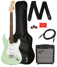 Fender Squier Sonic Stratocaster Pack - Surf Green Bundle with Frontman 10G Amp, Gig Bag, Instrument Cable, Strap, Picks, and 3-