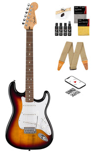 Fender Standard Stratocaster - 3-Color Sunburst Bundle with Strap, Guitar Cleaning Kit and Austin Bazaar Instructional Video