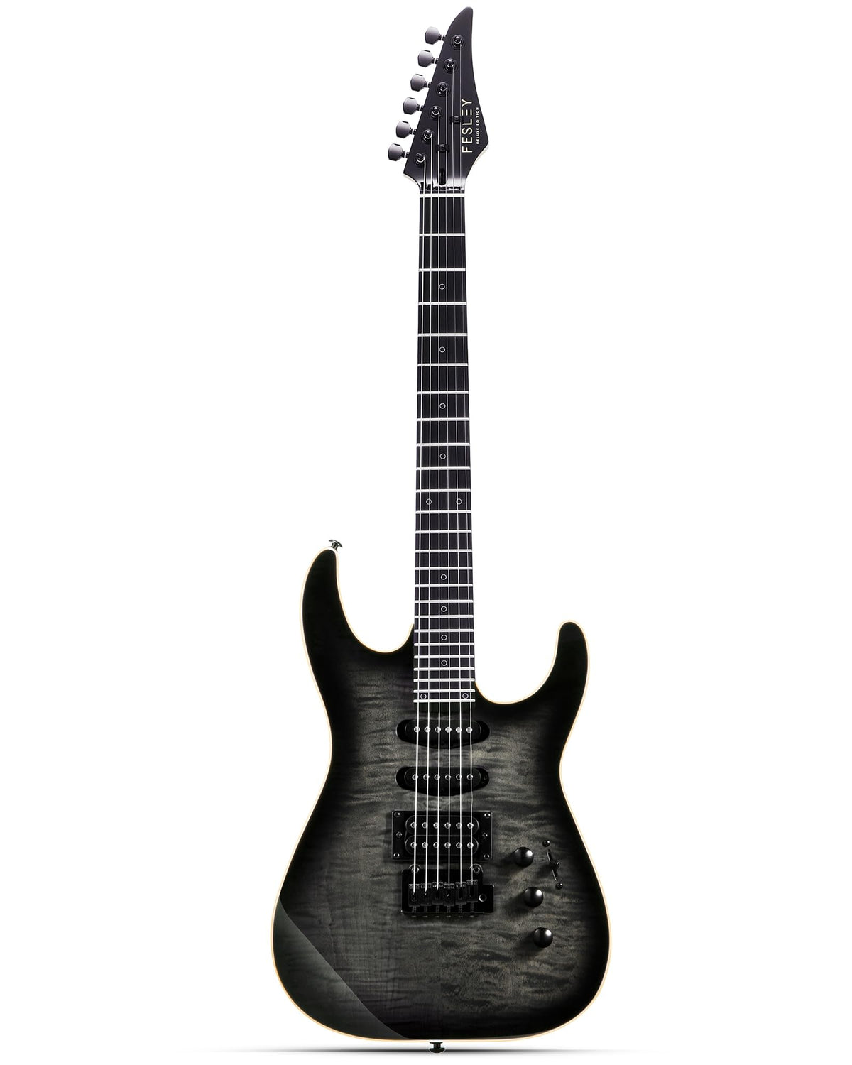 • Q: What type of pickups does the Fesley guitar use? A: The guitar is equipped with a versatile HSS ceramic pickup configuration, which includes a humbucker at the bridge and single-coil pickups in the neck and middle positions.