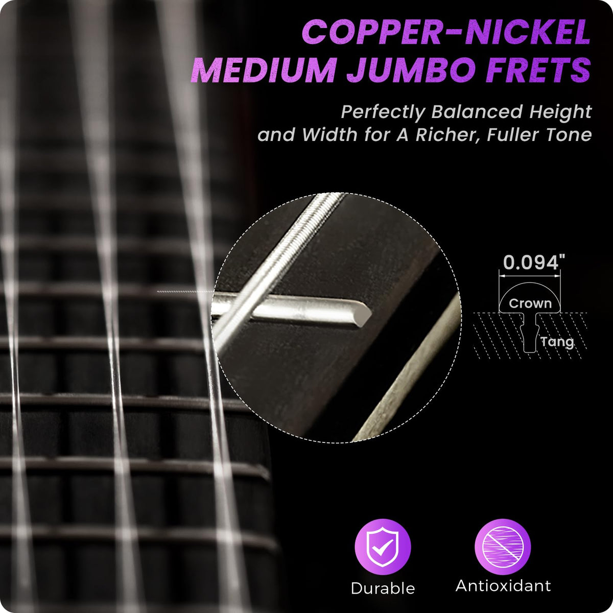 • Q: How many frets does this electric guitar have? A: This electric guitar has 24 frets, allowing for a wide tonal range and enabling both rhythm playing and lead solos.