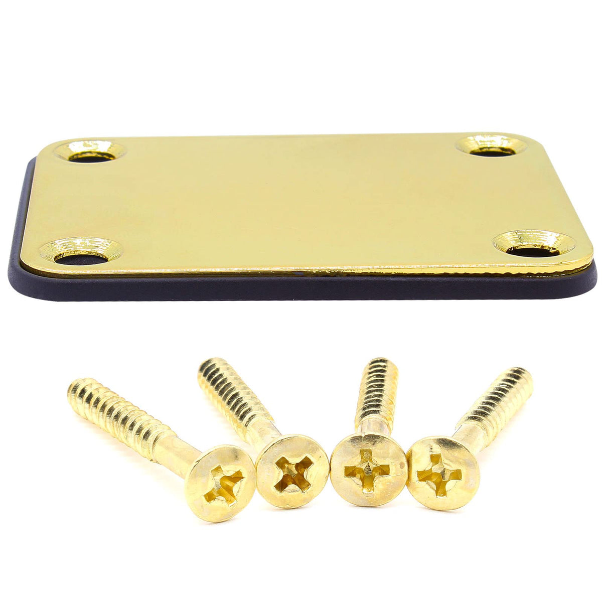 Jersvimc Gold Bass Guitar Neck Plate Replacement with Mounting Screws, Metal Neckplate Telecaster Neck Shim Electric Guitar Hard