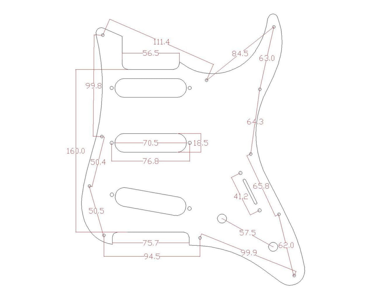 • Q: What is the thickness of the pickguard? A: The thickness of the pickguard is approximately 2.2mm, with a possible variation of +/- 0.2mm due to material differences.