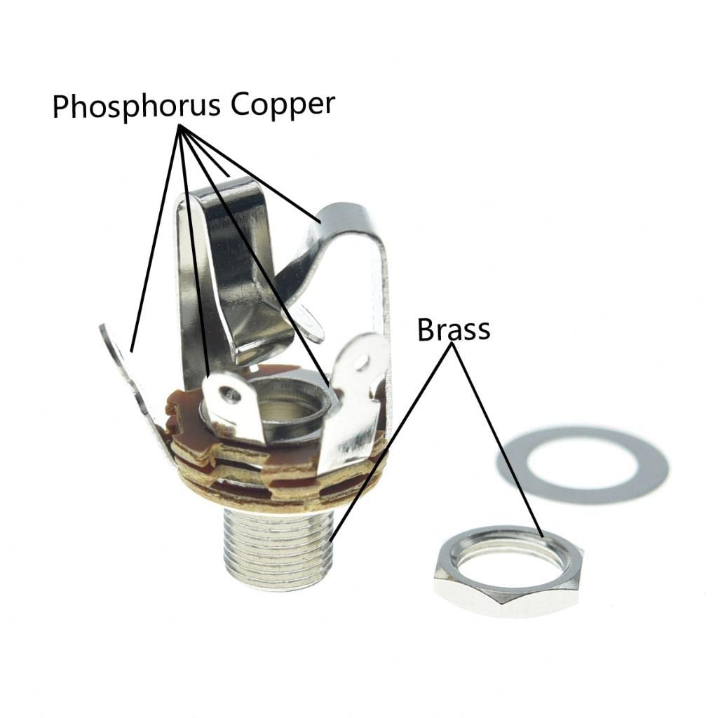 • Q: What materials are used in these audio jacks? A: The jacks are made of brass with phosphorus copper terminals, ensuring durability and quality connections.