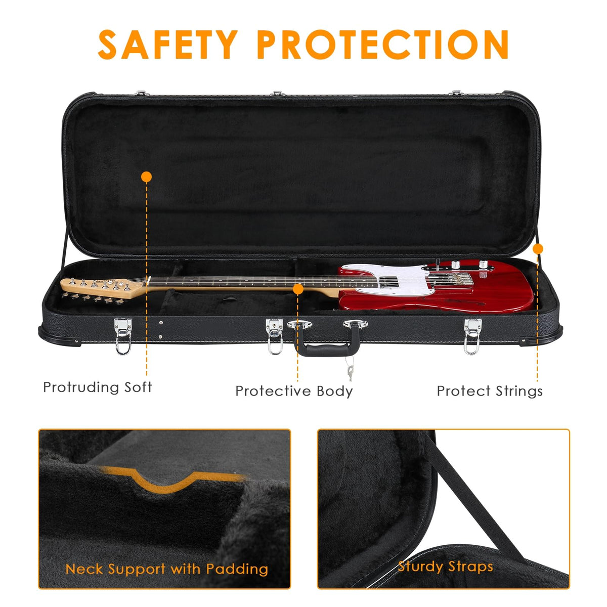 Ktaxon Electric Guitar Hard Case, Rectangle Wooden Standard 39-Inch Electric Guitars Hard-Shell Protective Carrying Case for KST