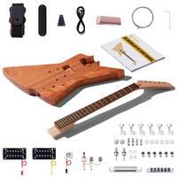 - Q: What style of guitar does this kit represent? A: This kit is designed in the Explorer style, featuring a set-in neck and a mahogany body with drilled cavities for easy assembly.