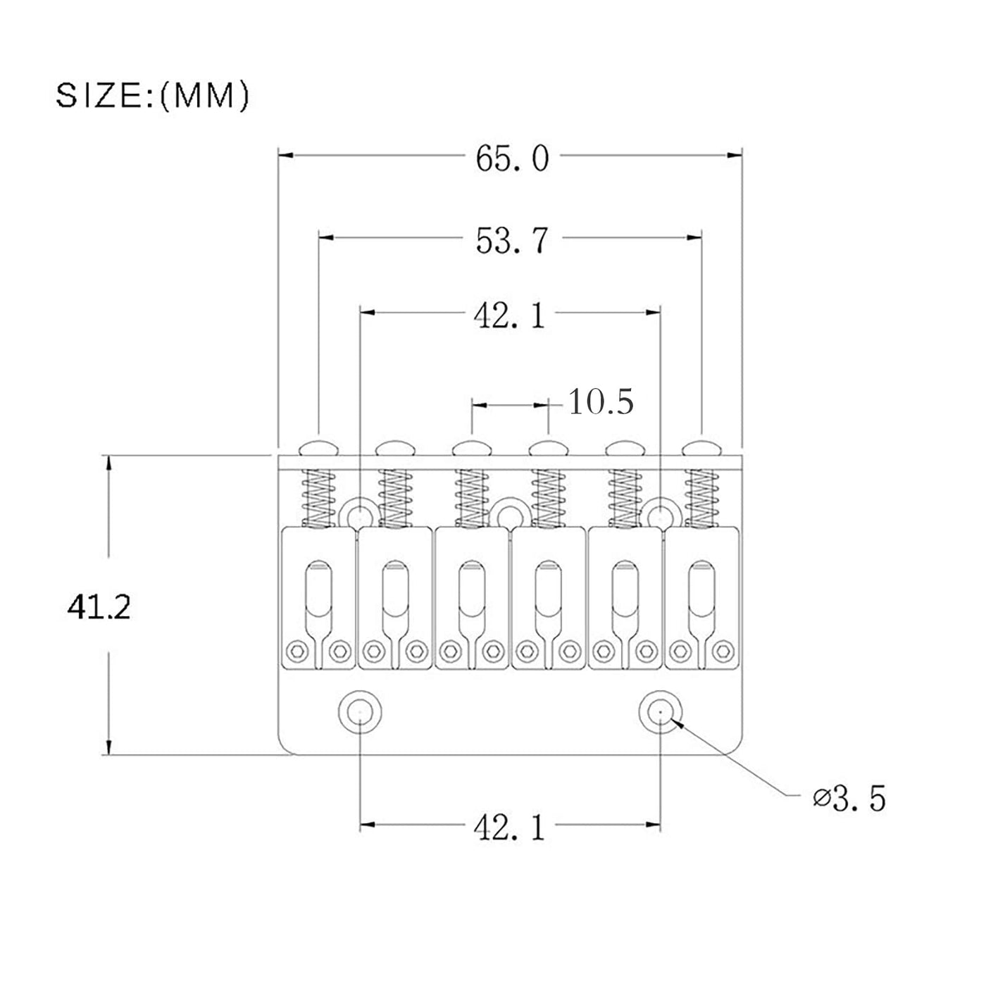 - Q: What is the size of the MAXCHEER 65MM Metal Fixed Hardtail Saddle Bridge? A: The size of the MAXCHEER 65MM Metal Fixed Hardtail Saddle Bridge is 65mm x 40mm x 13mm.