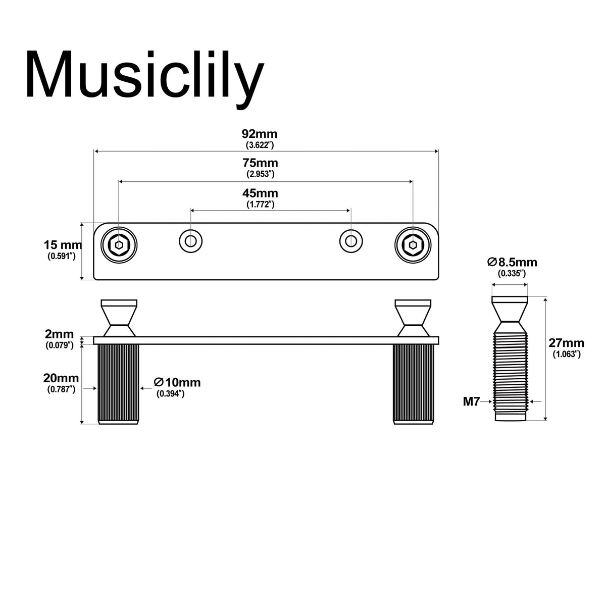 - Q: How do I install the Musiclily Pro Tremolo Bridge System? A: Installation involves securing the support bracket and studs to your guitar according to the specific dimensions provided. It is recommended to follow a guide or consult a professional if you are unsure.