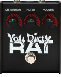 Let's get right to the point. Did most of the clothes in your closet hit the racks before the Reagan administration? Do you agree with the critics who say the best music was made before 1968, but also want to be the one to prove them wrong? The You Dirty RAT combines the sound of the garage with the spirit of innovation. This is the most classic sounding of all RAT distortion pedals. Think '60s garage rock. Think early punk. Think about the bands that changed the sound of rock 'n' roll. The key to the You Dirty RAT tone is in its germanium clipping diodes. Any pedal aficionado will tell you that nothing compares to the warm tone that these sought after components provide. This pedal is the perfect middle ground between distortion and fuzz, combining the characteristic cutting RAT tone with the warmth of a classic fuzz-tone. The You Dirty RAT also provides 3 dB more compression than the original RAT. This not only provides more ''tube amp warmth,'' but adds extra sustain. The You Dirty RAT features the legendary RAT Filter control. Turn it to the right to roll off brittle high-end frequencies. Having trouble cutting through the mix? Turn the Filter down and allow the natural brightness of your instrument to shine through. The Distortion and Volume controls dial in the perfect amount of gain while keeping the level consistent with your clean tone. While there's no mistaking the legendary RAT tone when the pedal is on, true bypass switching guarantees that no extra noise will creep into your signal when it's turned off.