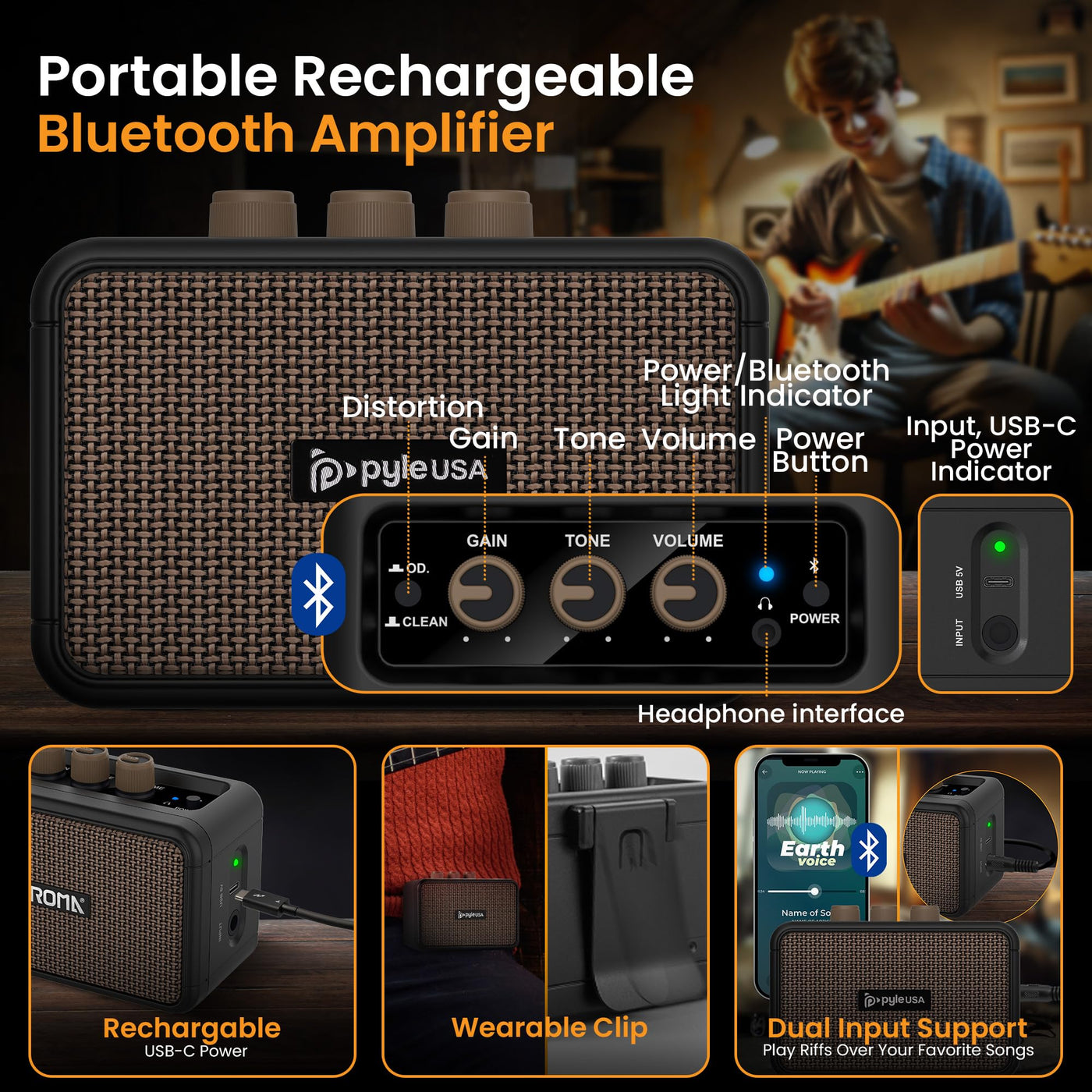 - Q: What features does the amplifier have? A: The amplifier includes controls for volume, drive, treble, and bass, allowing users to customize their sound.