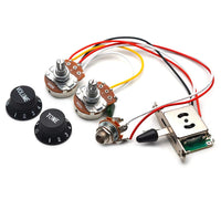 SAPHUE Guitar Wiring Harness Set Prewired 500K Big Pots 5 Way Switch Wiring Harness Kit with 6.35 Output/Black Knobs for Electri