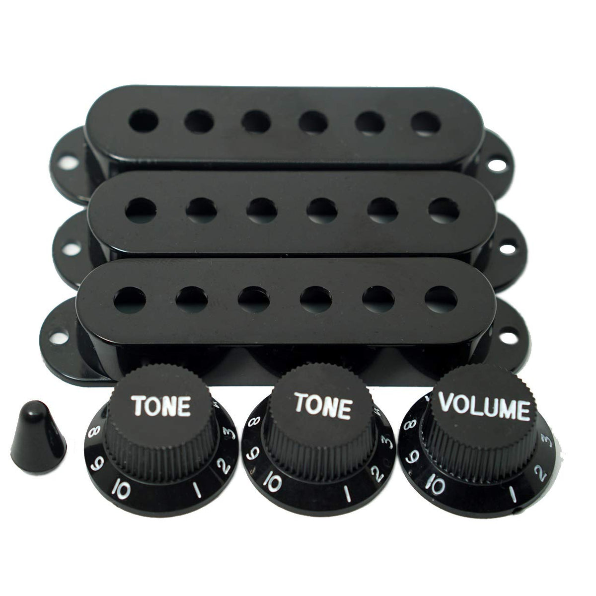 ShareGoo Guitar 3 Single Coil Pickup Cover 2 Tone Knobs 1 Volume Knobs Switch tip,Black
