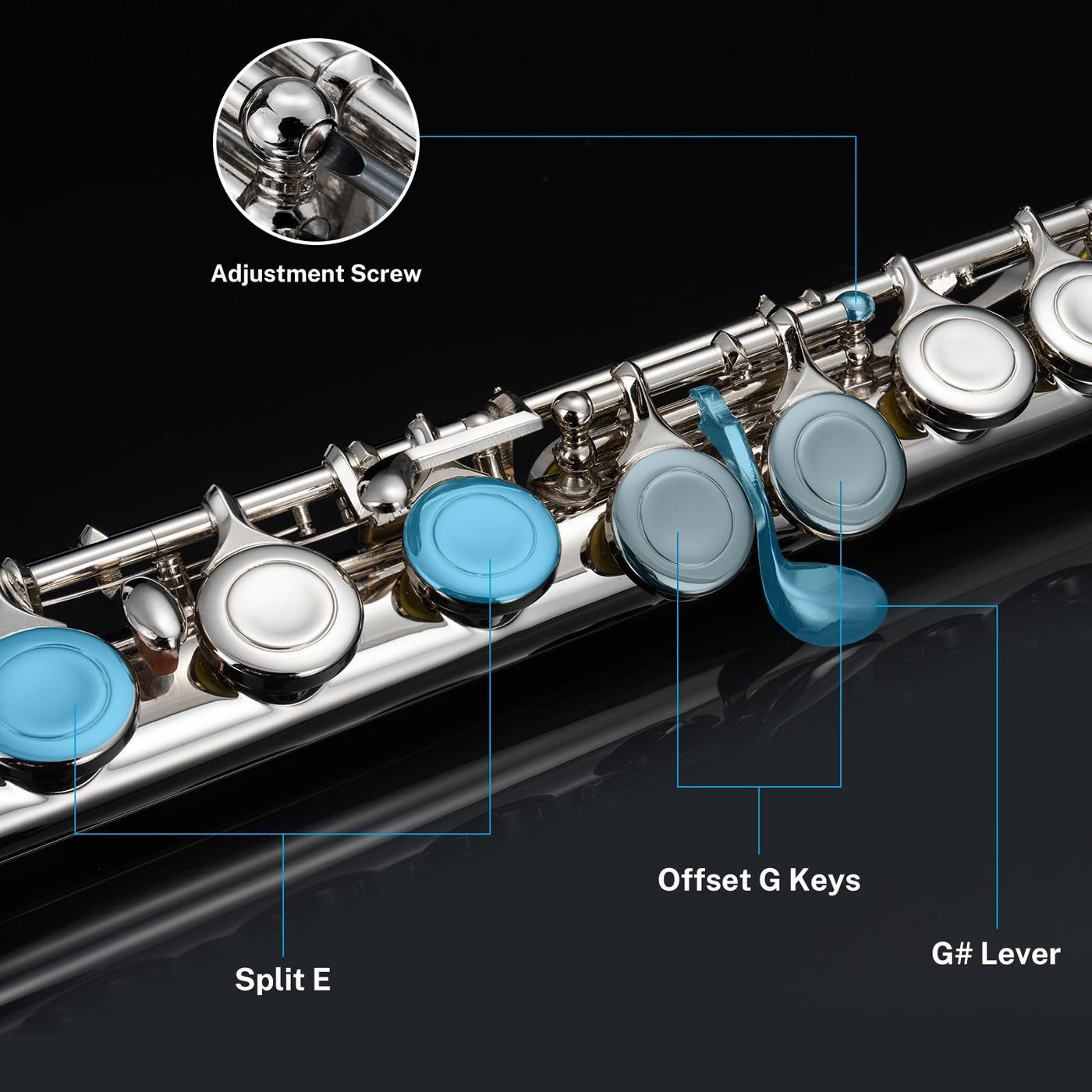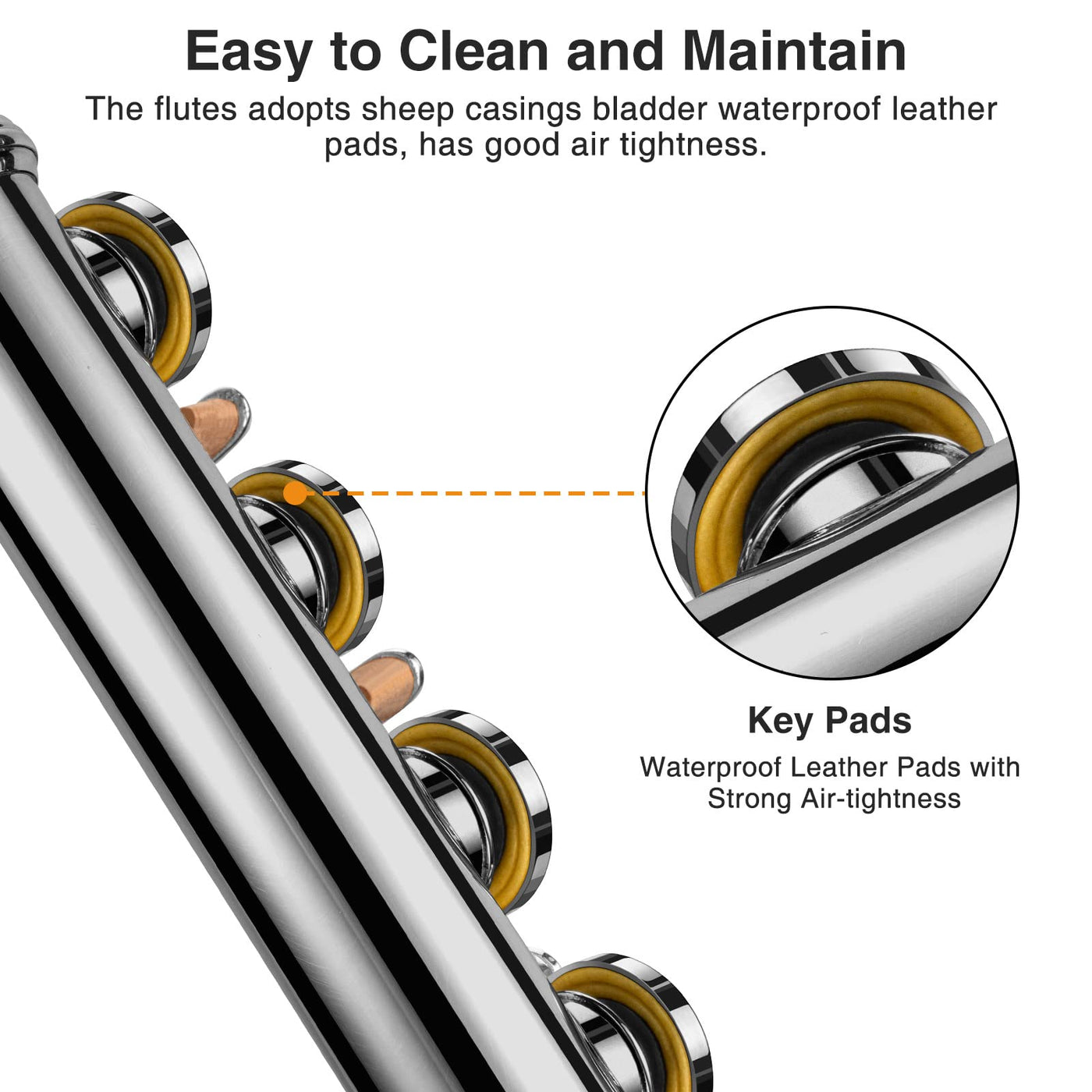 POGOLAB Flutes, Closed Hole C 16 Keys Flute Instrument, Student Flute for Beginner Advanced Player, with Flute Cleaning Kit, Car