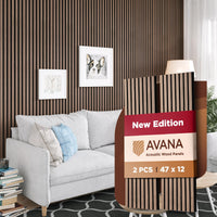 Avana Acoustic Wood Wall Panels - 47.2 X 12.6 Inch Walnut Acoustic Panels 2 PCs - Wall Panels For Interior Wall Decor for Homes,