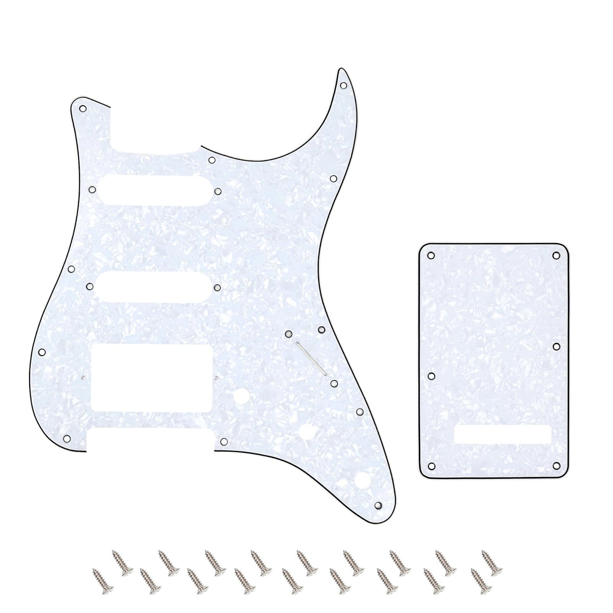 - Q: Are there variations in screw hole placements? A: Yes, please note that the screw holes on the guard plate may exhibit minor deviations from your original part, as even Fender and its associated brands have changed hole locations over the years.