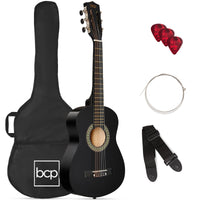 • Q: What items are included in the Best Choice Products Kids Acoustic Guitar kit? A: The package includes a kid's size acoustic guitar, electric tuner, carrying case, extra strings, strap, pitch pipe, and a pick.