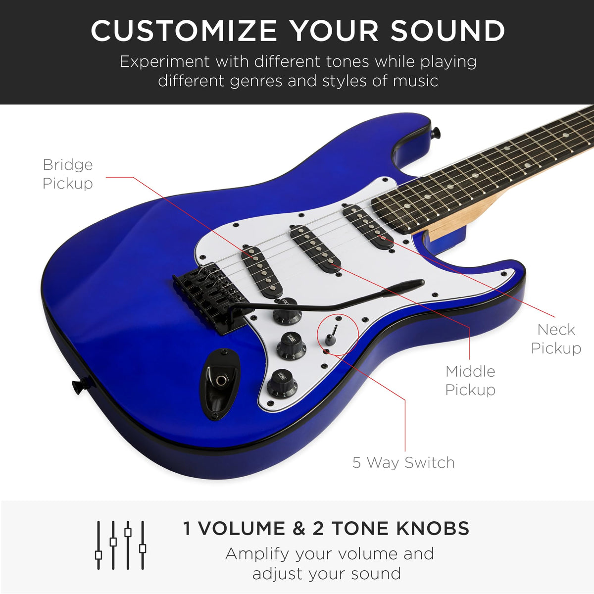 Best Choice Products 39in Full Size Beginner Electric Guitar Starter Kit w/Case, Strap, 10W Amp, Strings, Pick, Tremolo Bar - Me