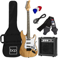Best Choice Products 39in Full Size Beginner Electric Guitar Starter Kit w/Case, Strap, 10W Amp, Strings, Pick, Tremolo Bar - Na