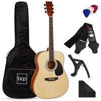 Best Choice Products 41in Full Size Beginner All Wood Acoustic Guitar Starter Set w/Case, Strap, Capo, Strings, Picks - Natural