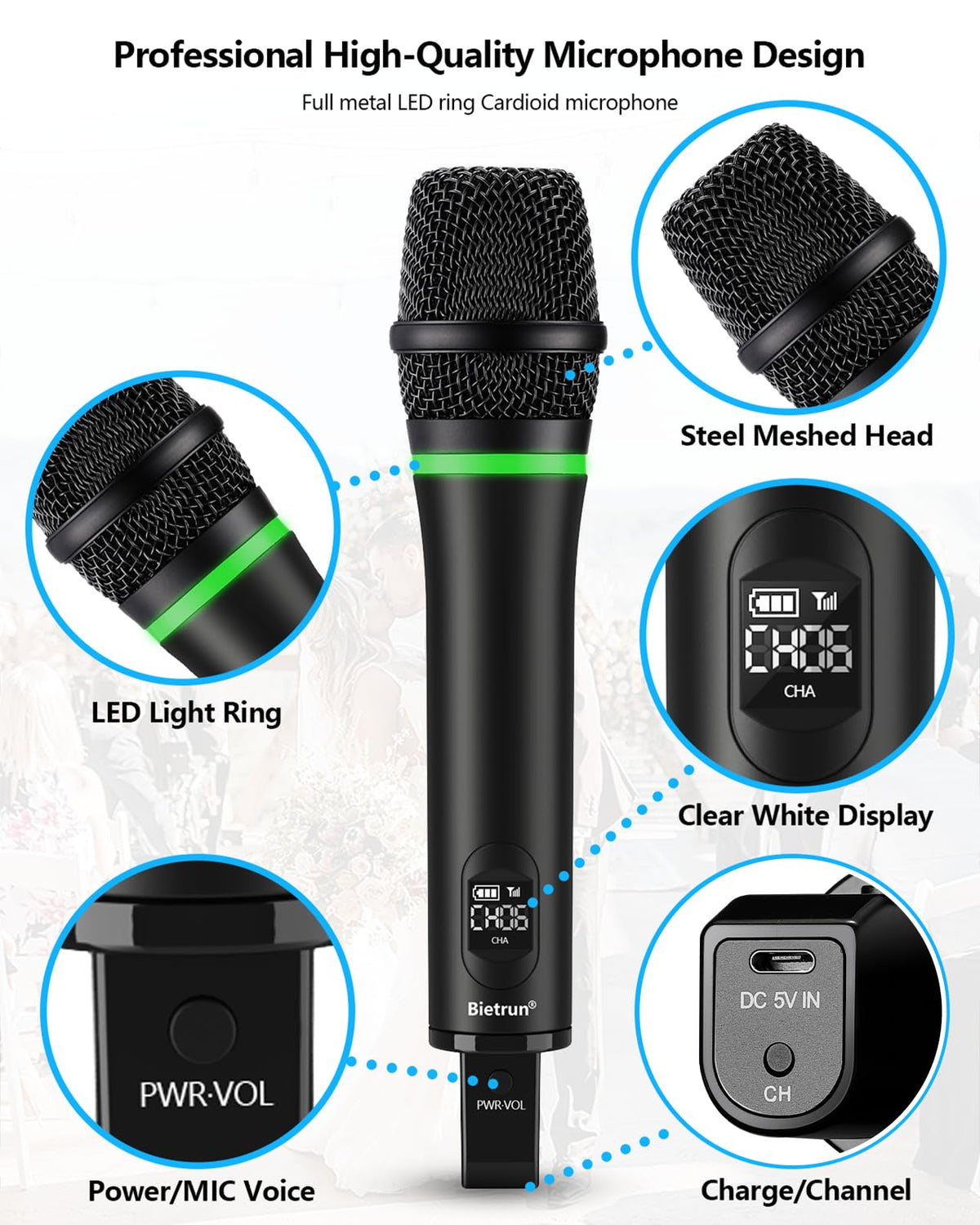 - Q: What applications is the Bietrun microphone suitable for? A: This microphone is ideal for various applications, including conferences, speeches, karaoke, singing, and instructional use.
