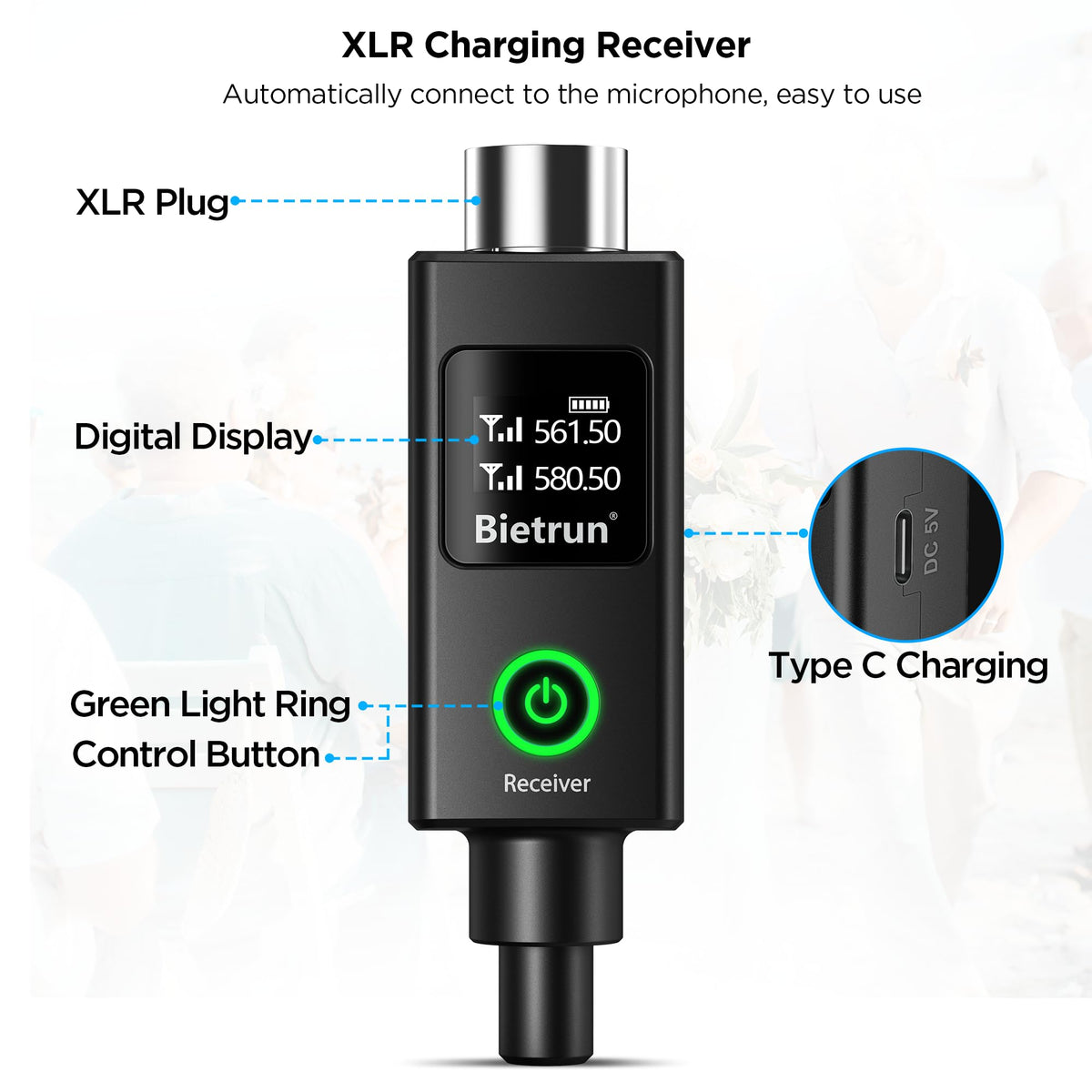 - Q: What is the range of the Bietrun XLR Wireless Microphone? A: The Bietrun XLR Wireless Microphone has a UHF range of up to 240 feet (75 meters) in an open area, providing stable signal transmission.