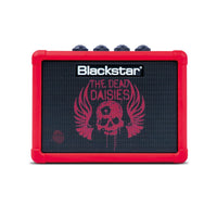 • Q: What is the design of the Blackstar Fly 3? A: It features a custom rock star red soft touch casing with black skull top control knobs, along with The Dead Daisies iconic logo on the grill.