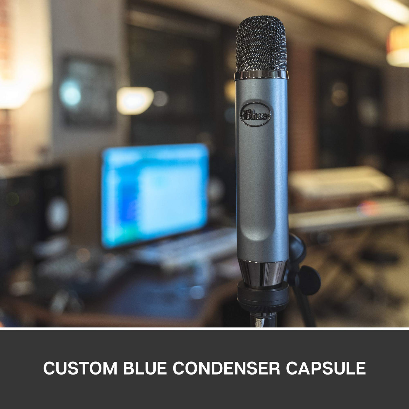 Blue Ember XLR Condenser Mic for Recording and Streaming, Custom Cardioid Capsule and Mic Stand Mount, Gray
