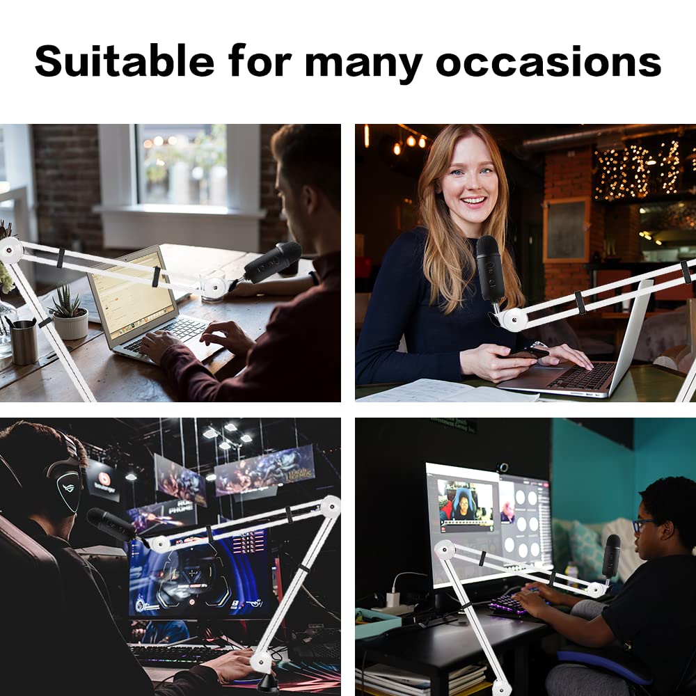 • Q: Can I adjust the position of the microphone easily? A: Yes, the boom arm features a 360-degree rotation, allowing for easy adjustments to position your microphone as needed.